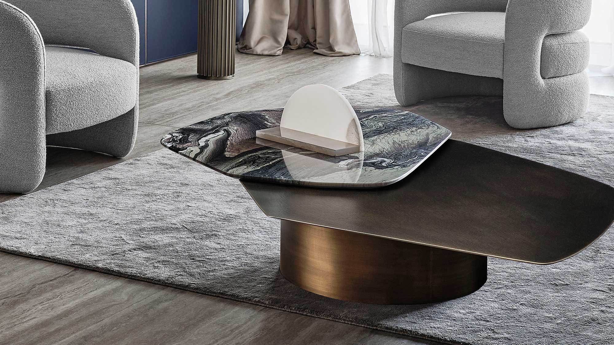 Coffee table Incanto, a combination of natural materials and craftsmanship. Natural shapes come together with precious materials creating an unusual coffee table with double top.
