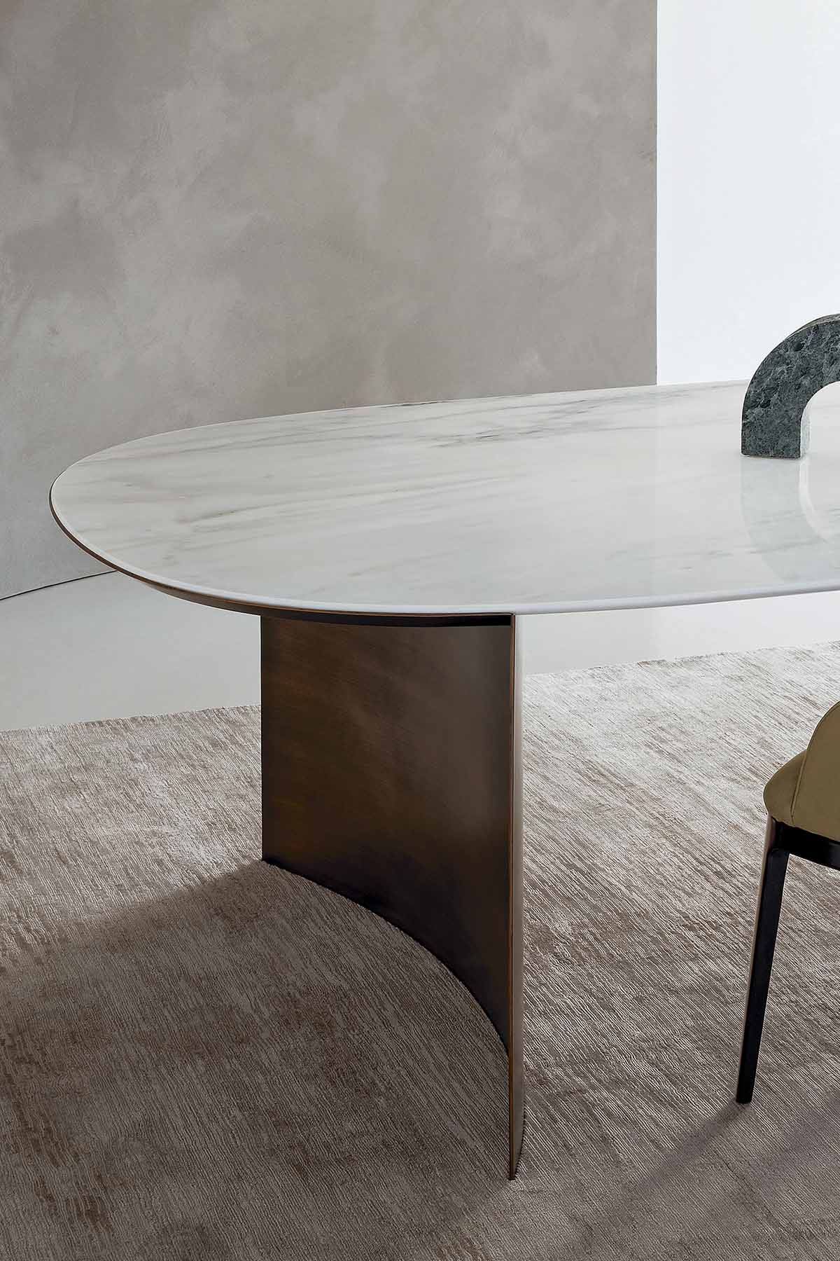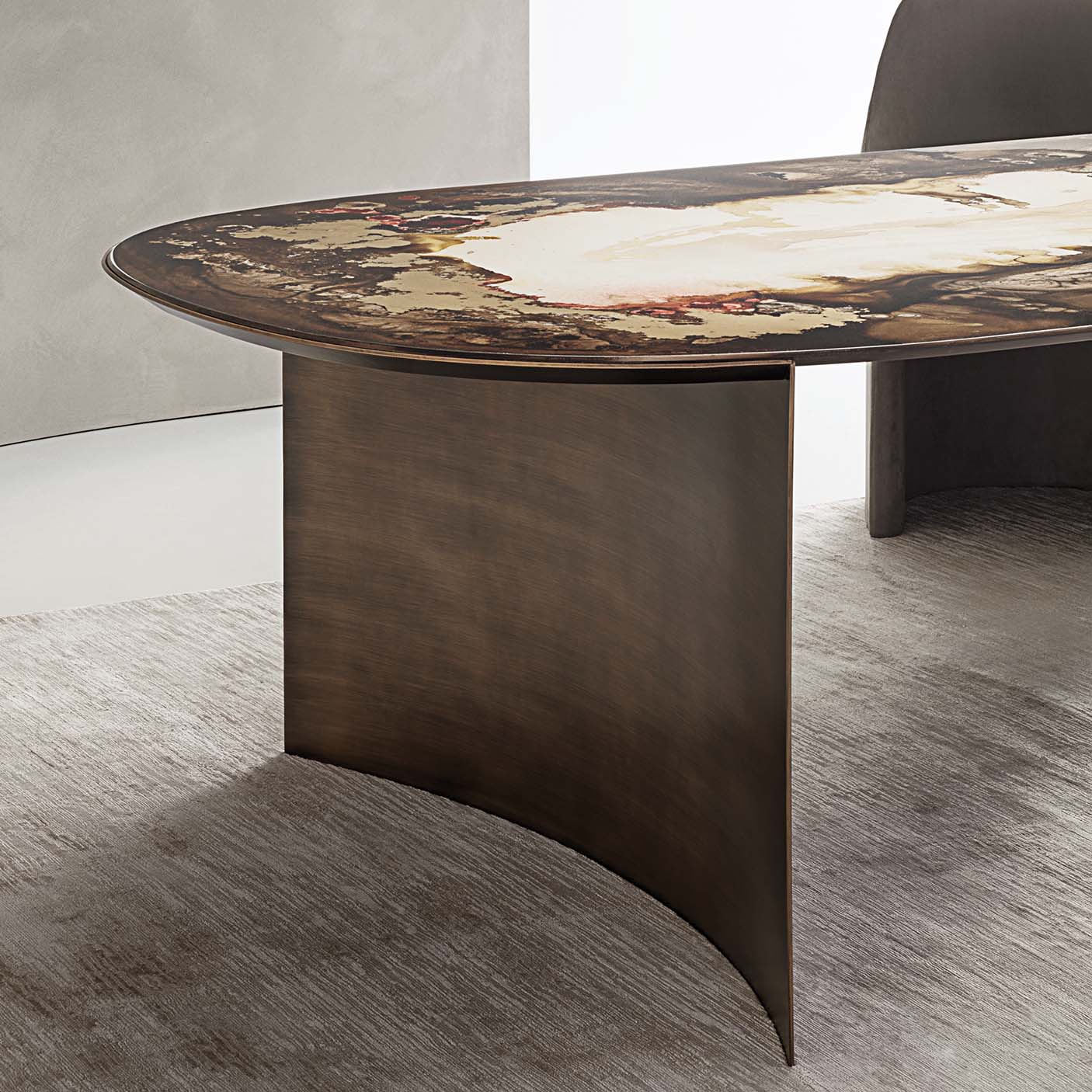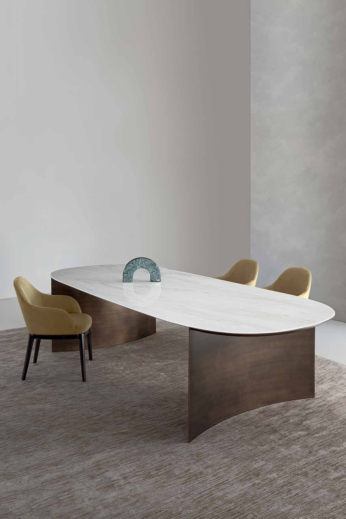 An organic and seductive design embellishes the presidential desk, characterized by the profile under the bronze top set along the perimeter that supports and the top, in marble, wood and de