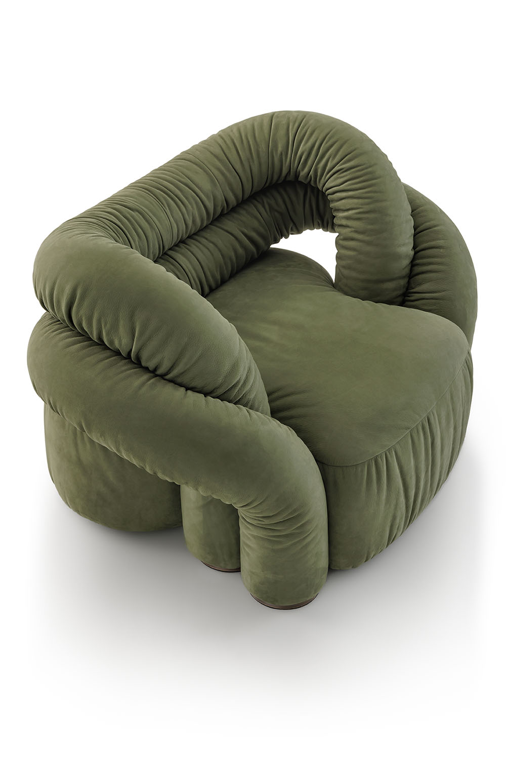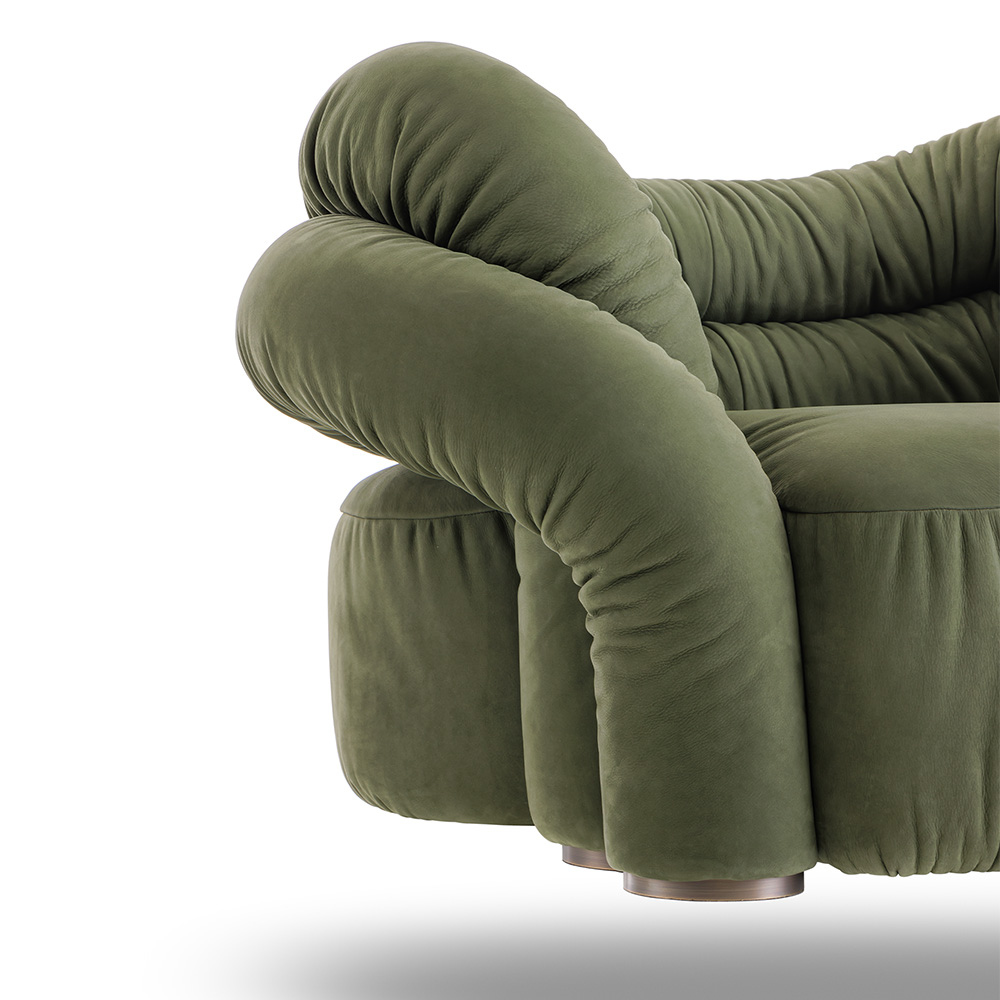 Lounge armchair ABBRACCIO comes from the need to blend the sinuous line of the armrests in a weave that results in an envelo- ping seat “hugging you”. A cloud of cozy softness that creates a great sculpture.