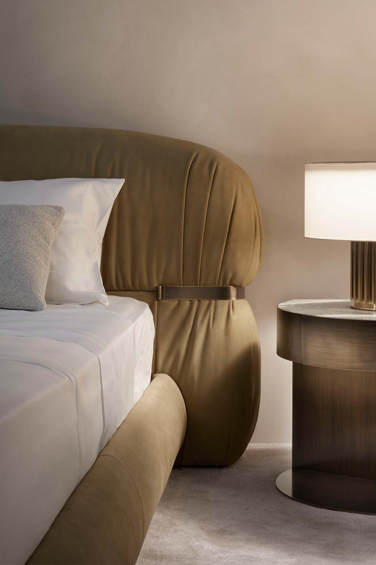 The Fandango bed features carefully studied details with soft, delicate and enveloping lines, such as the padding of the headboard, which makes it a highly contemporary product.