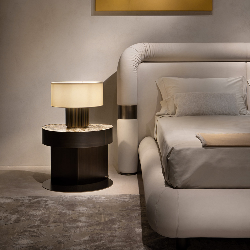 Loom is a bed with soft, voluptuous and sensual shapes. The shape of the headboard like the one of the sommier are made by a tube and are slightly curved creating a surface pleasant to the touch that convey a desire for warmth and comfort.