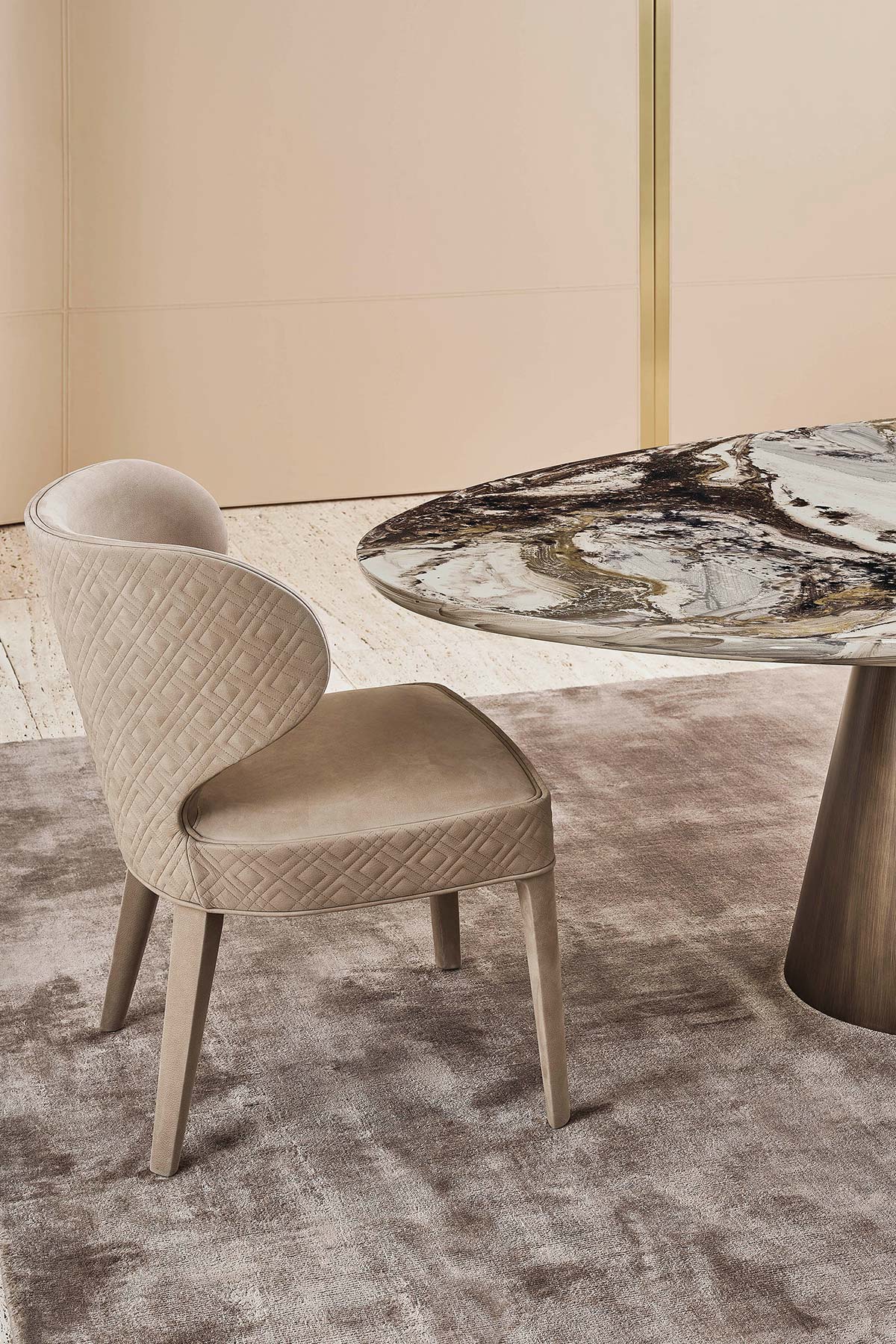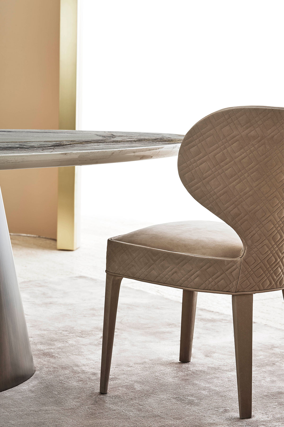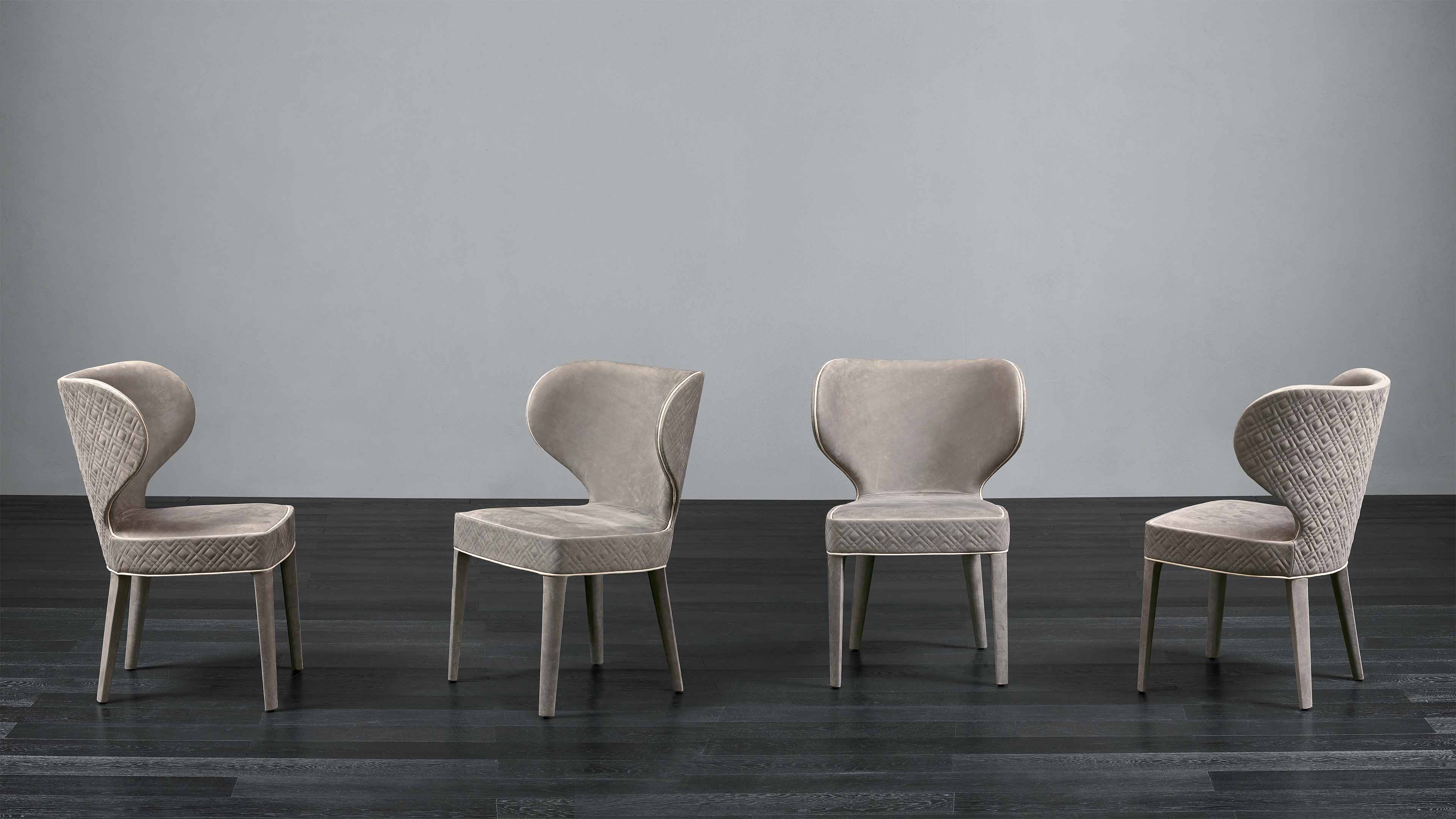 Chair, also available with high back, wholly upholstered or with wooden legs. Outer backrest plain or with ELLE stitching.