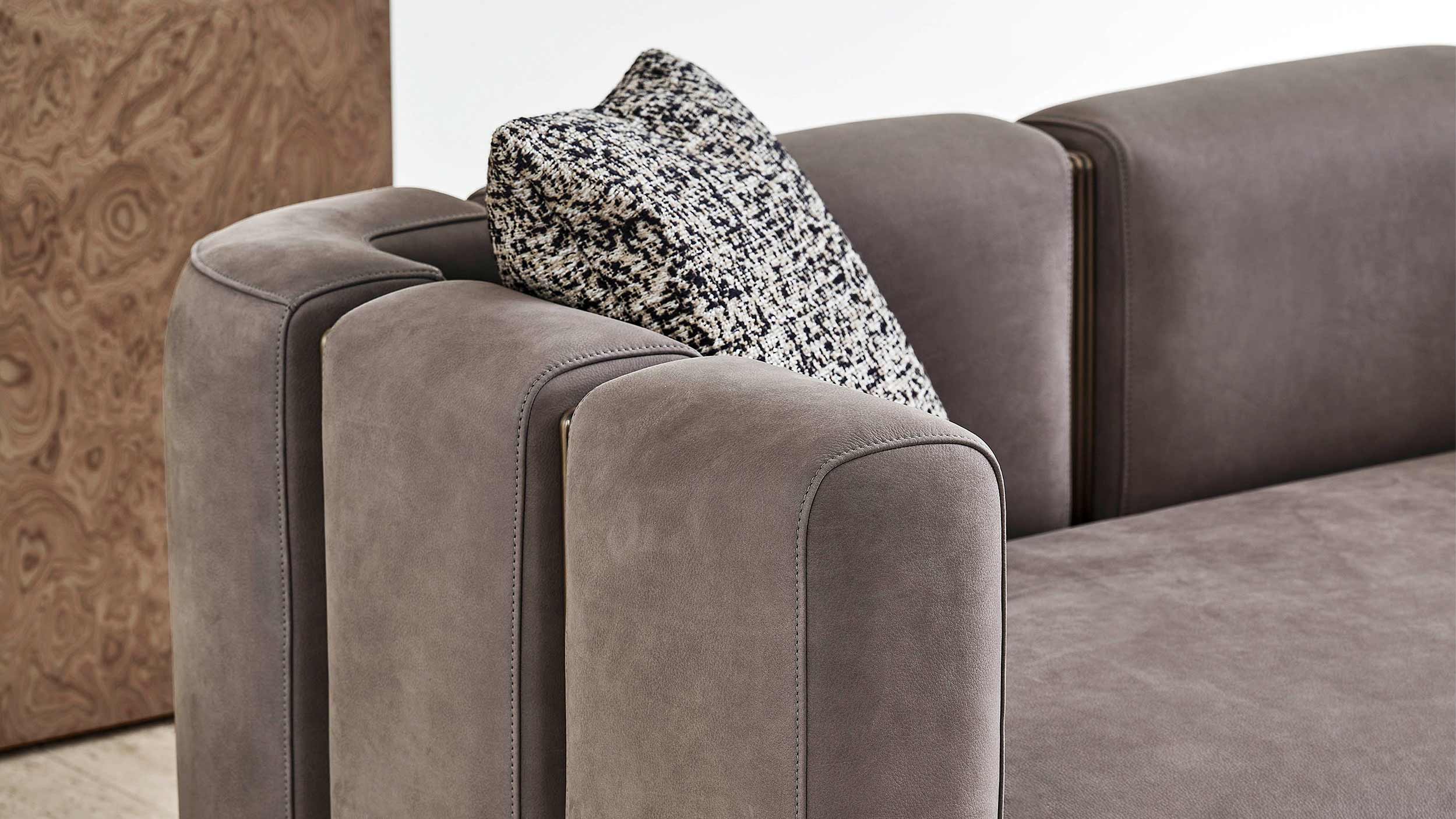 A range of upholstered furniture characterised by brushed brass and bronze drawn tubes that, combined with the leather, create a stylish pattern.