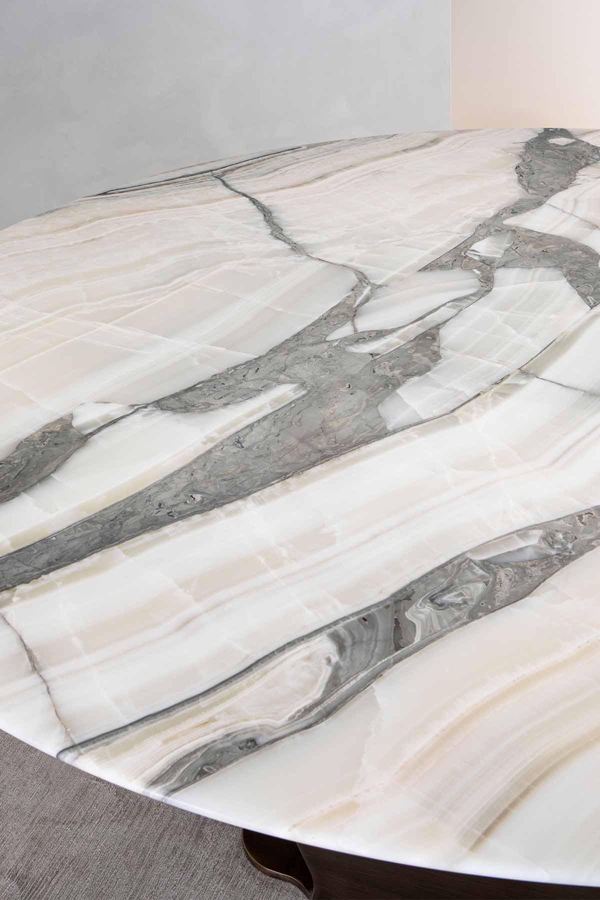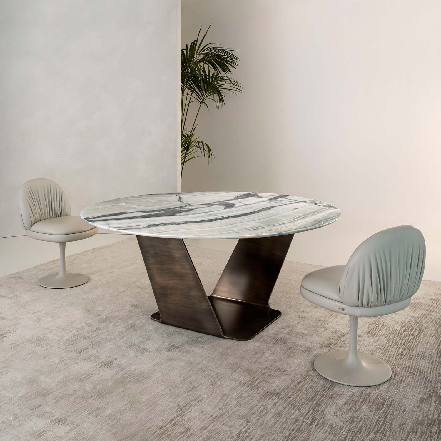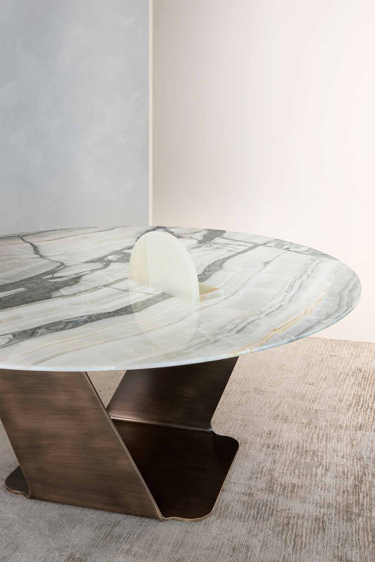 Skilled construction techniques merge with design to create a sculptural base enriched by different types of natural stone tops and the distinctive Rugiano Decoration.