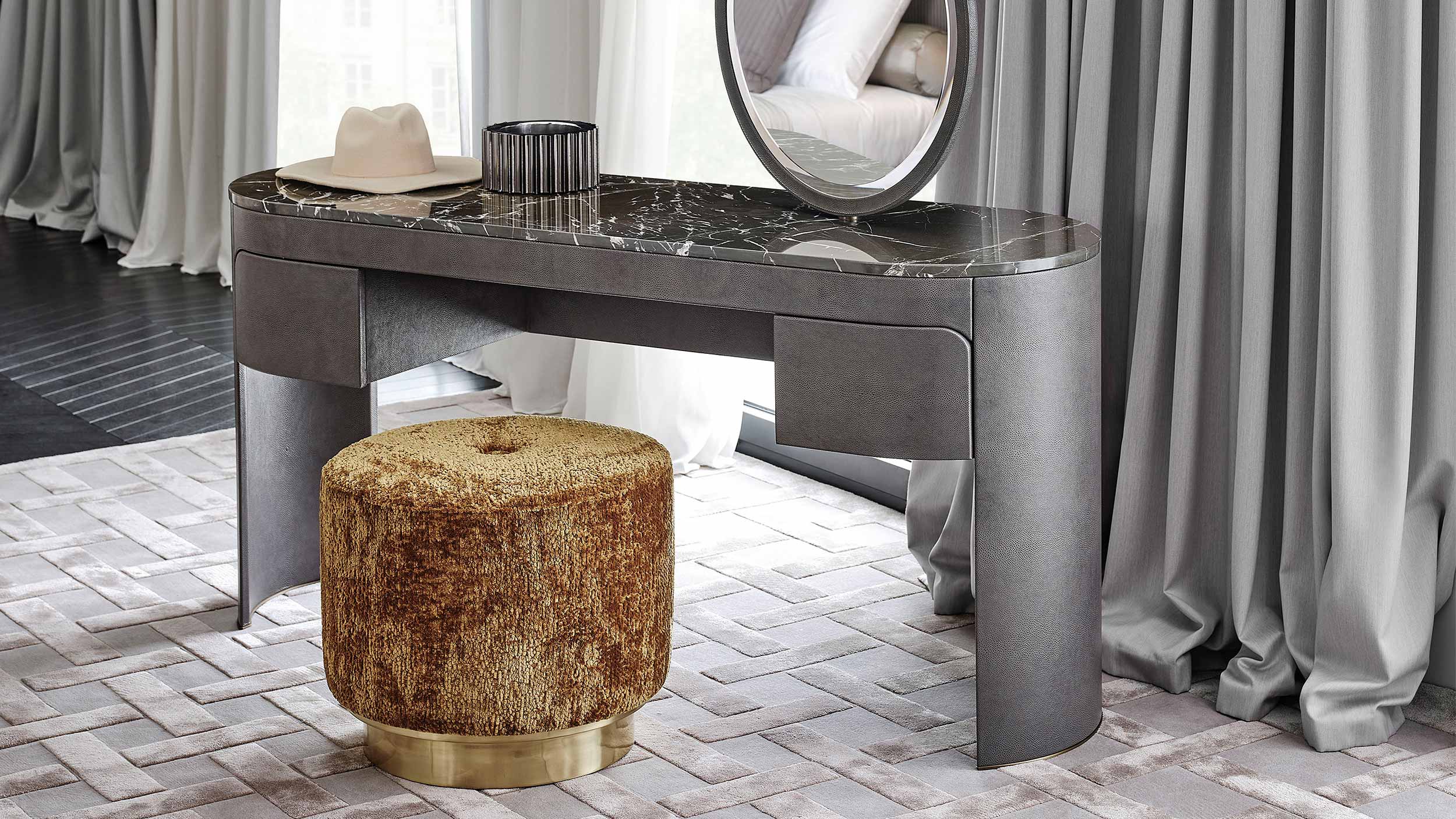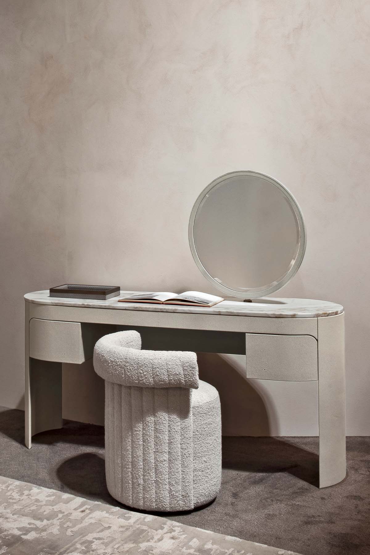 Toilet with revolving mirror and marble top. Large drawers on the sides.