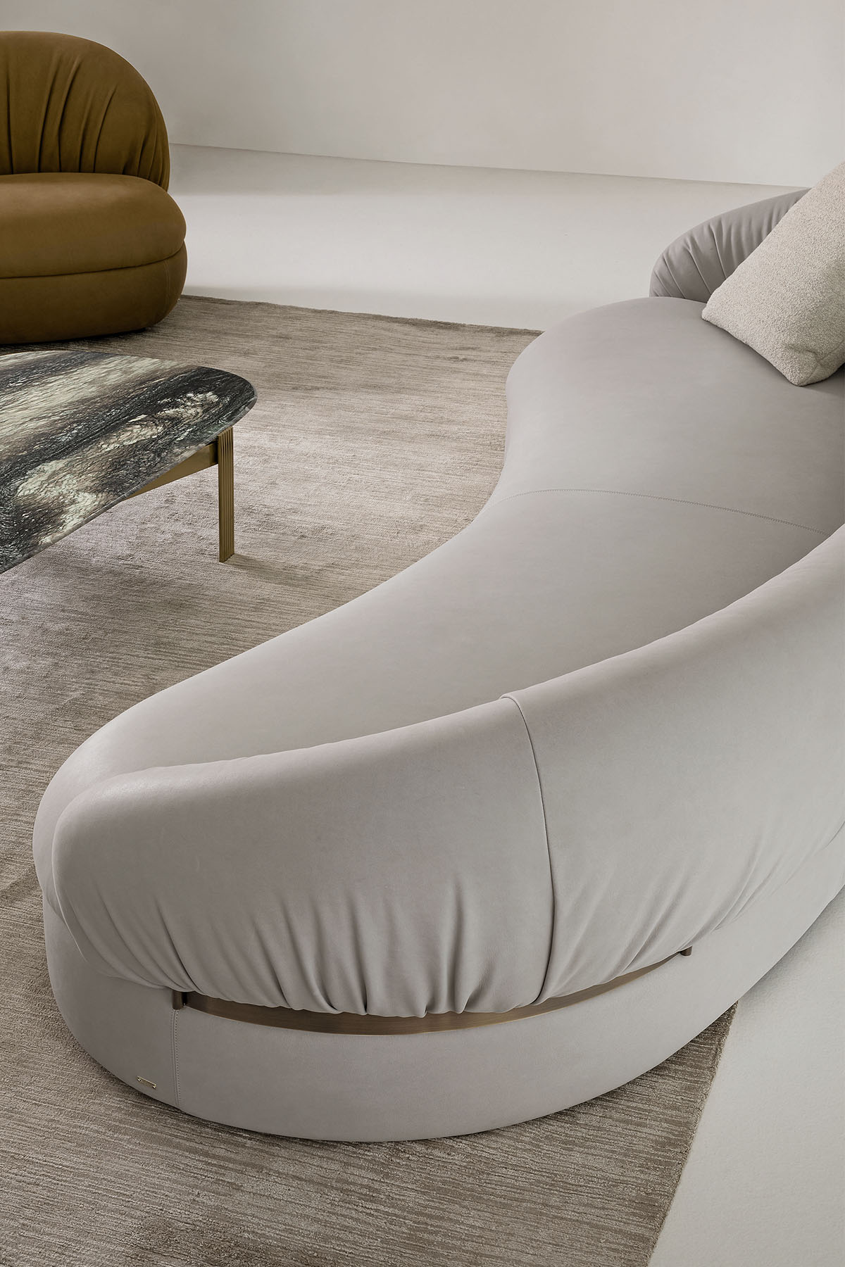 Seduta integrata con la base, dalle forme arrotondate su cui poggia uno schienale avvolgente, sono le caratteristiche che rendono il divano Fandango un progetto non solo ergonomicamente perfetto ma anche visivamente accattivante.