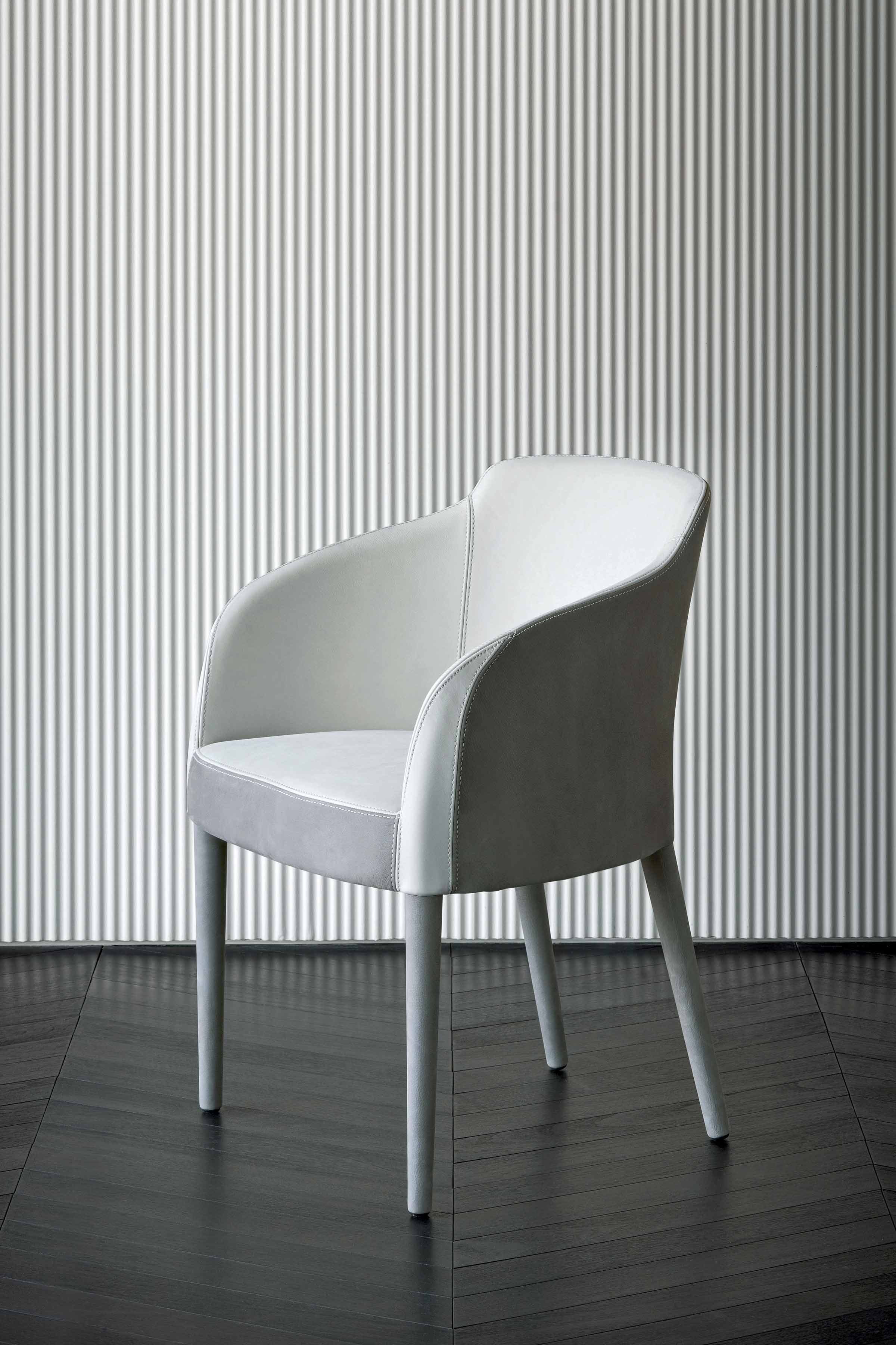 Poltroncina completamente rivestito o con gambe in cromo nero o oro chiaro.