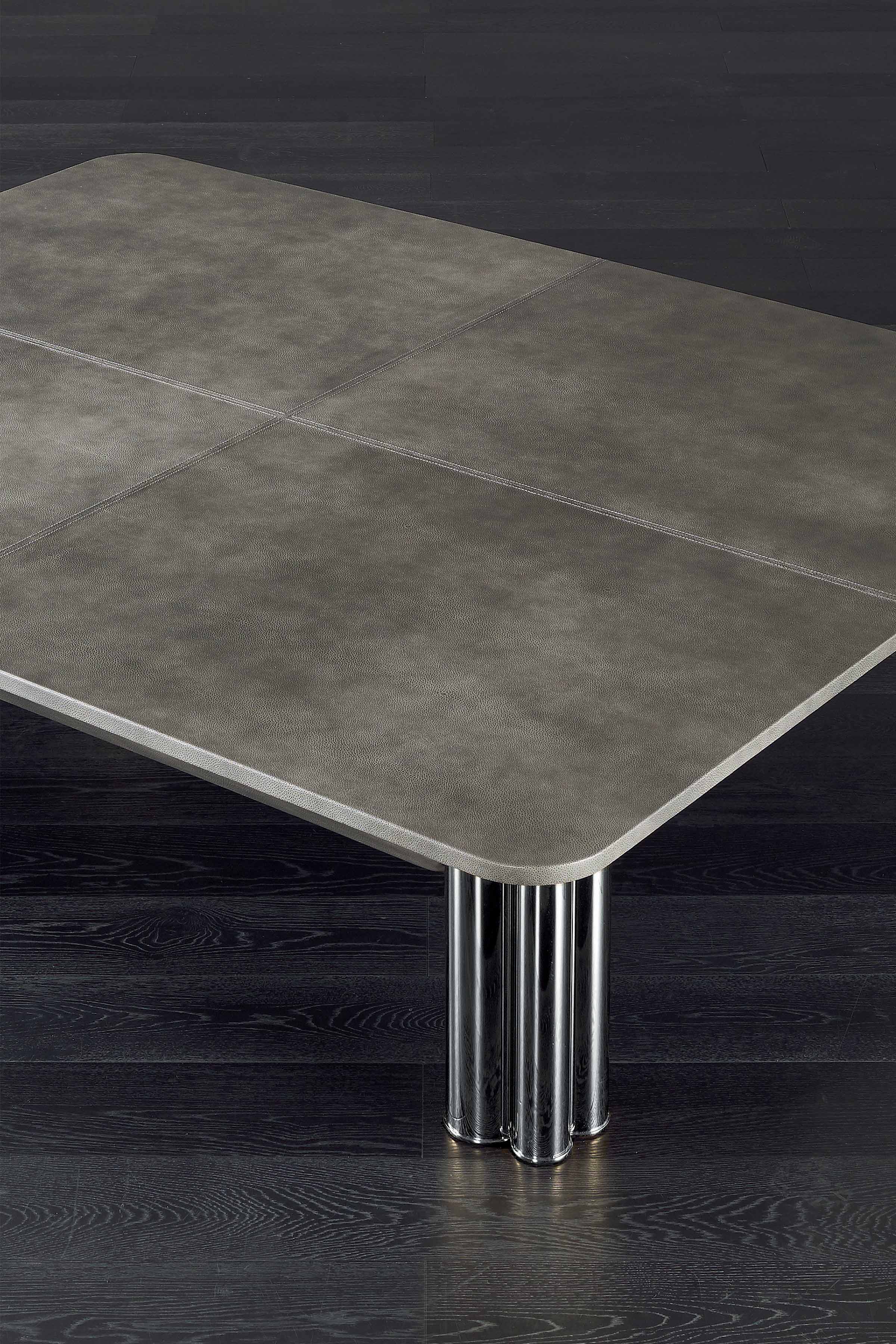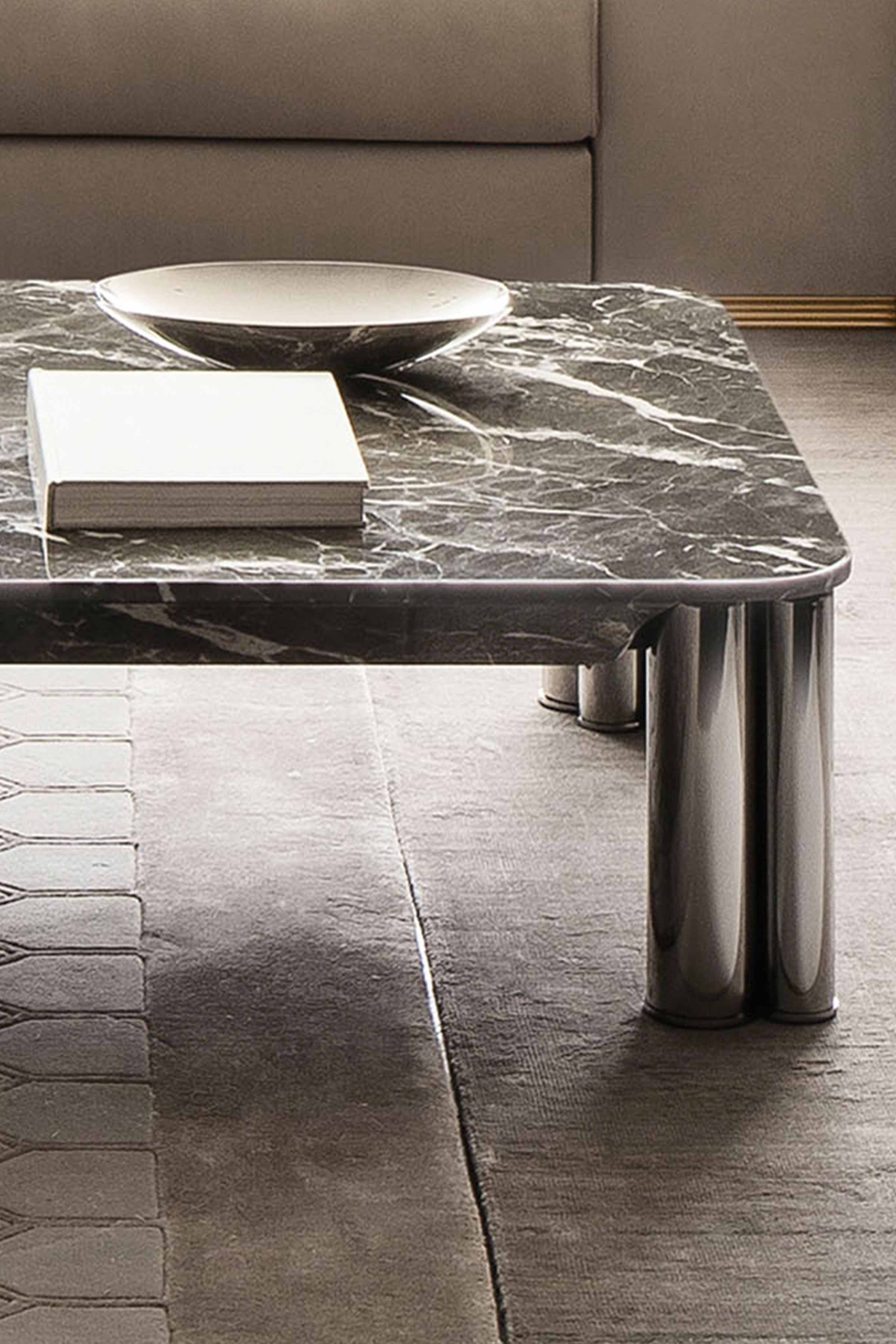 Oro lucido o cromo nero caratterizzato le gambe importanti. Piani disponibili in diverse misure in legno, marmo, rivestiti in pelle o decorati.